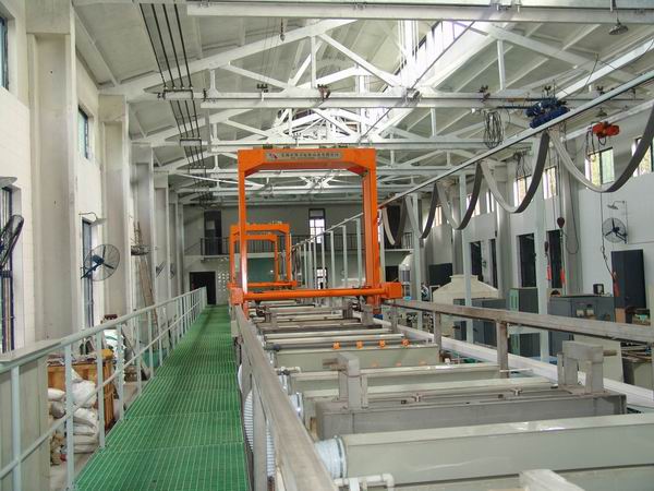 金磊電鍍園占地80余畝,投資2.1億元,設有鍍鋅生產線、鍍銅鎳鉻生產線、塑料鍍生產線、鍍硬鉻生產線、氧化∕陽極氧化生產線、電泳生產線、噴涂生產線、電子連續鍍生產線等,建成54m×18m×7m